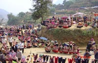 Arrivée à la gare de Lao Cai vers 5 heures du matin. Douche dans un mini - hôtel et petit déjeuner puis transfert direct au marché des minorités ethniques (le marché de Bac Ha si c'est dimanche, le marché de Coc Ly si c'est mardi, le marché de Can Cau si c'est samedi ou le marché de Sin Cheng si c'est mercredi). Ce marché très typique est une excellente occasion pour découvrir la vie des minorités ethniques peuplant la région. On y trouve tout : des buffles, des porcs, des chevaux, des poulets, des chiens, du tabac, des piments, des légumes, des plantes médicinales, des tissus...bref tous les produits apportés des champs et des ménages.