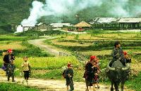 Petit déjeuner chez l'habitant. Continuation de la randonnée entre forêts et rizières en terrasse. Diner et nuit chez l'habitant des Nung à Ho San. Note : 5-6 heures de marche